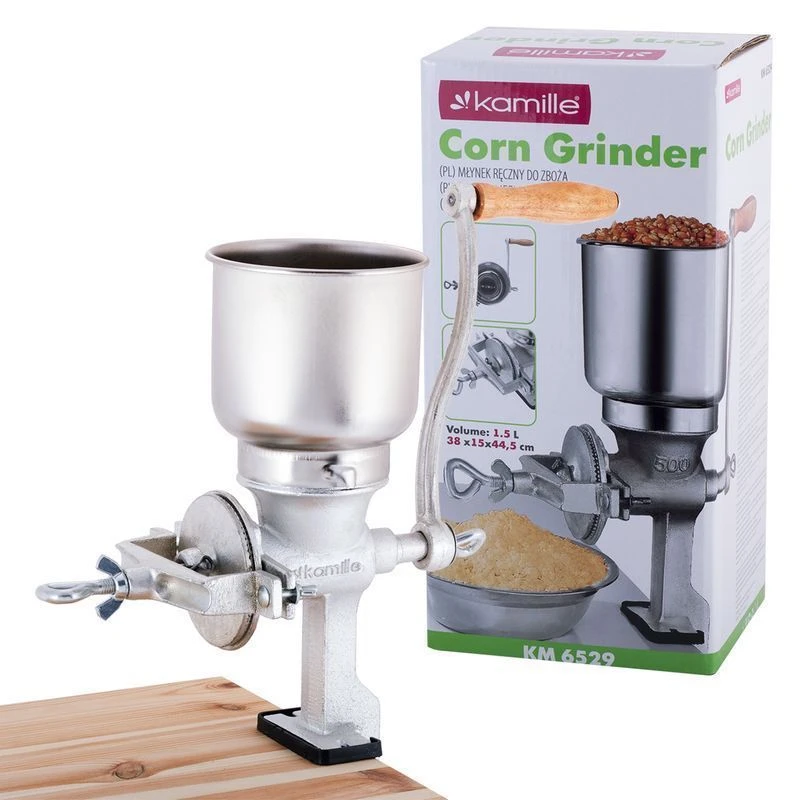 Ручная мельница для зерна Kamille KM-6529 - Идеальное устройство дополняющее производство круп, хлопьев, домашнего пива и сусла. Прекрасно работает при выпечке домашнего хлеба для производства муки грубого помола и измельчения гороха и кукурузы.
