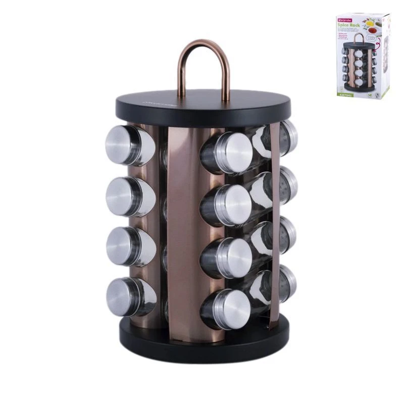 Набор емкостей для специй 16 баночек на круглой подставке с ручкой Kamille KM-7041