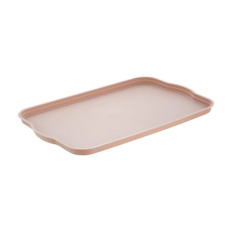 Поднос прямоугольной формы - универсален и удобен для переноски нескольких предметов одновременно. Поднос может использоваться для переноски посуды, чайника, столовых приборов и других предметов со стола на кухню или наоборот. Поднос предотвратит повреждение столешницы или другой поверхности от нагрева или влаги. На подносе можно размещать бутерброды, фрукты, кондитерские изделия - это сделает подачу пищи эстетичной и аккуратной. Поднос с бортиками 2см позволяет комфортно употреблять пищу, не беспокоясь о разливании и разбрызгивании. Поверхность "шагрень" предотвращает скольжение посуды на подносе, а благодаря удобным боковым ручкам поднос не выскользнет из рук. Прочный материал обеспечивает долговечность изделия. Поднос выдерживает до 1,5 кг, для сохранения формы подноса рекомендуется равномерное распределение тяжести.Температурный режим: от -5С до +70С.