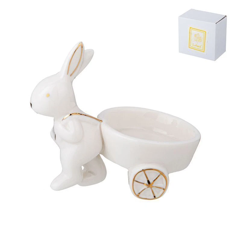 Подставки под яйца выполнены в классическом белом цвете и декорированы ручной росписью золотом. Они отлично вписываются в интерьер помещений, обставленных, практически, в любом стиле. Их можно рассматривать бесконечно, находя все новые, ранее не замеченные нюансы. Благодаря присутствию этих милых изделий, атмосфера дома становится более уютной и теплой.