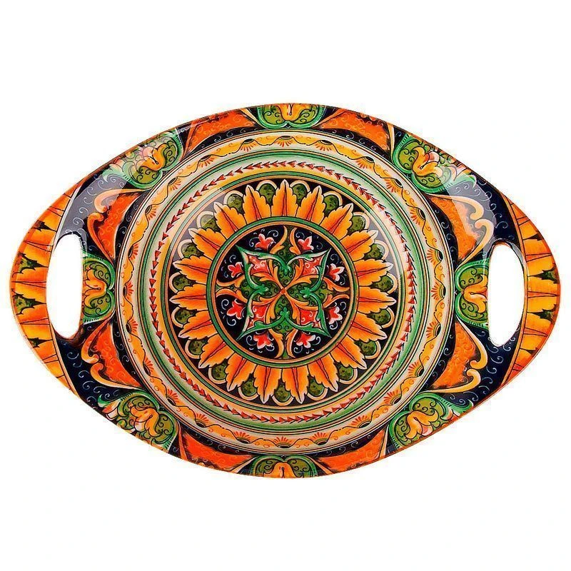 Каждый предмет из коллекции Arabesque создан с использованием дополнительного слоя глазури поверх деколи, что позволяет сделать поверхность глянцевой, а цвета максимально яркими. В результате получается неповторимое изделие, которое будет привлекать внимание и радовать глаза своих владельцев.