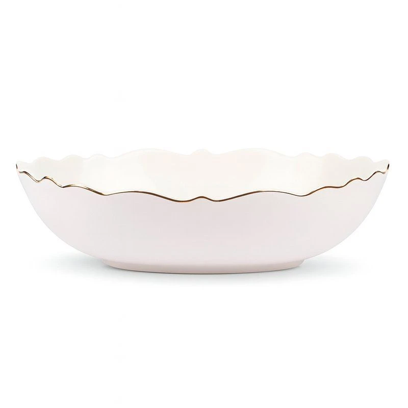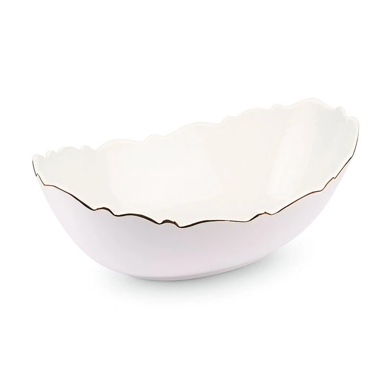 Блюдо сервировочное LORAINE – это стильное решение для любого торжества. Этот элемент декора создаст атмосферу роскоши на вашем празднике. Посуда для сервировки изготовлена из керамики высокого качества. Окантовка золотого цвета придает изделию особый шик и элегантность, подчеркивая его премиальность. Благодаря своим размерам блюдо для подачи подойдет для легких закусок, фруктов, овощей, свежей выпечки, десертов, печенья, сыров, салатов, и даже для таких блюд как шашлык, плов, картофель, блюда из рыбы и мяса – эта посуда сервировочная справится со всеми кулинарными задачами. Блюдо овальное LORAINE сочетает в себе функциональность и эстетику. Возможность мытья в посудомоечной машине делает уход за ним максимально простым и удобным. Практичность и удобство использования делают эту посуду для сервировки незаменимым помощником на кухне. Такое декоративное блюдо обязательно понравится тем, кто ценит практичность и красоту в одном предмете. Это блюдо сервировочное белое может стать замечательным подарком для истинных ценителей эстетики и оформления стола.