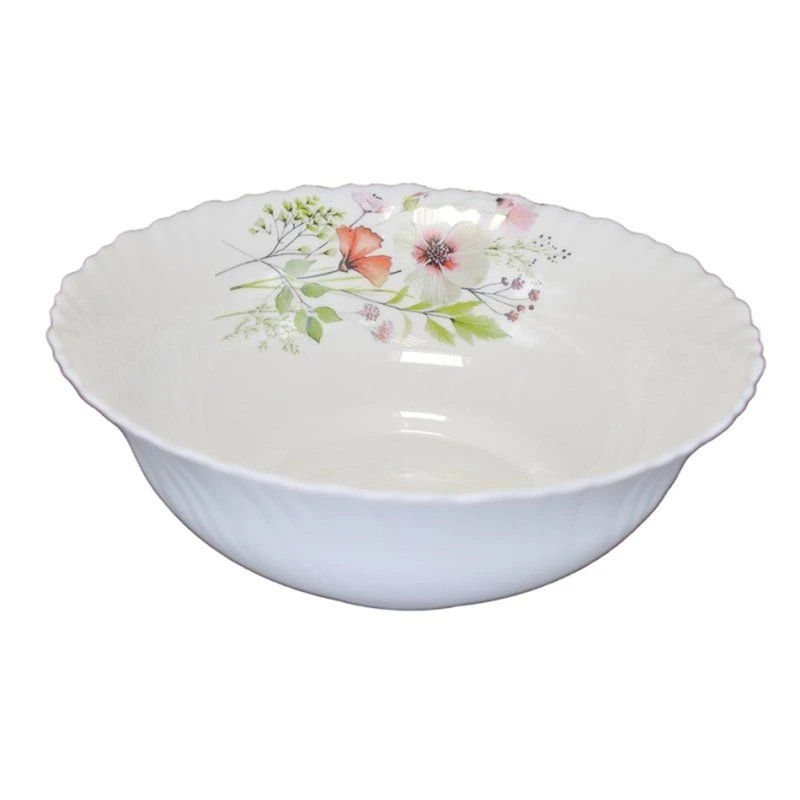 Коллекция Сухоцветы изготовлена из белоснежной тонкой стеклокерамики с фигурным краем.