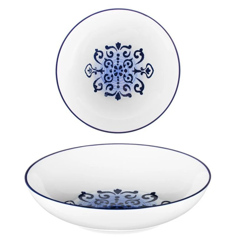 Фарфоровый салатник "Этника" от IVLEV CHEF – это универсальная посуда для сервировки. Благодаря своей форме в виде низкой и широкой тарелки он подойдет для подачи как классических, так и многослойных салатов, заливного, гарниров, а также фруктов. Восточный орнамент и сочетание белого и синего цветов прекрасно смотрятся как в повседневной, так и в праздничной сервировке.