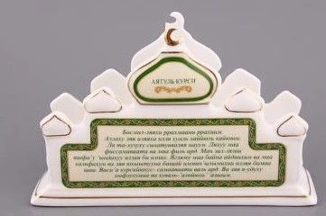 Эксклюзивная коллекция посуды «Суры из Корана». Кувшины, чайники, сахарницы, кружки, чайные пары, декоративные тарелки и другие предметы выполнены из высококачественного тонкостенного фарфора. Восточный орнамент, небольшие отрывки Сур из Корана на классическом арабском и русском языках с отделкой золотом украшают изделия. Это прекрасный мусульманский подарок, всегда нужный и теплый. Относитесь к нему бережно и с почтением. Посуду коллекции можно использовать как в повседневной жизни, так и на торжественном приеме.