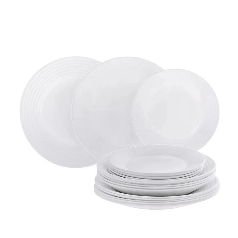 Столовый набор серии Арена выполнен из ударопрочного стекла, устойчивого к резким перепадам температуры. Возможно использование в посудомоечной машине и СВЧ.