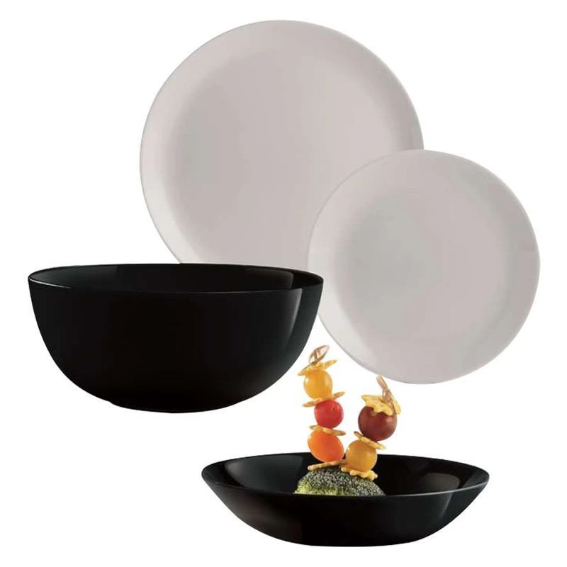 Столовый набор серии Дивали блэк-гарнит выполнен из ударопрочного стекла, устойчивого к резким перепадам температуры. Возможно использование в посудомоечной машине и СВЧ.
