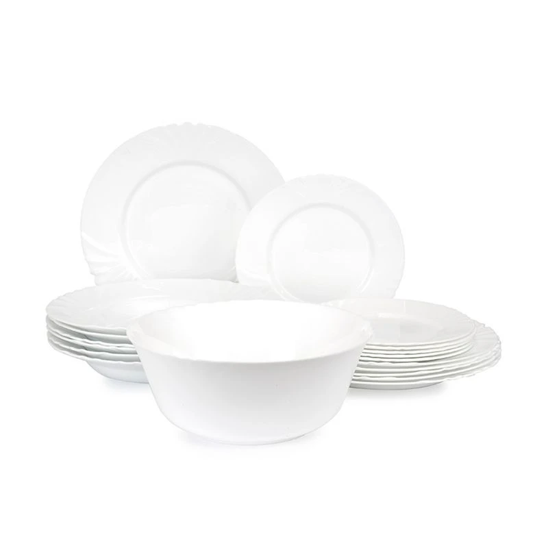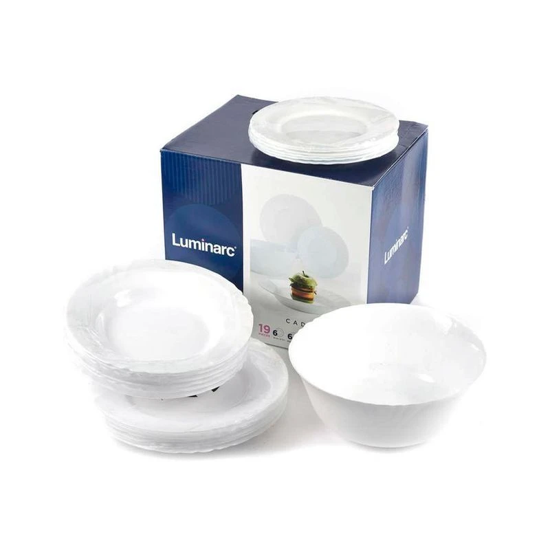 Столовый набор серии Кадикс изготовлен из ударопрочного стекла. Выдерживает перепады температуры, что дает возможность использования в микроволновой печи и в посудомоечной машине. Элегантная сдержанность форм, белоснежный цвет и нежный рельефный узор понравятся многим хозяйкам.