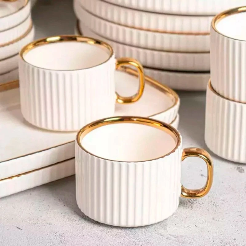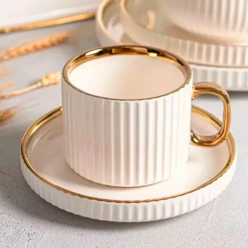 Чайный набор из шести чашек 250мл (диаметр 9 см, высота 6,5 см) и шести блюдец 15см.