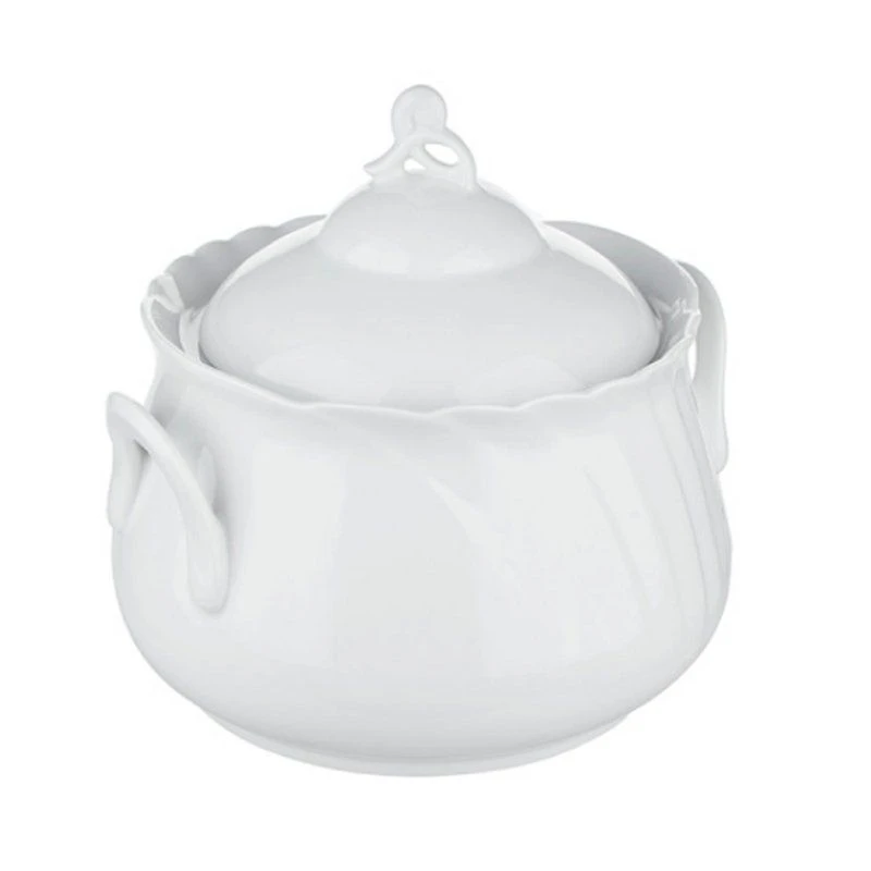 Супница с крышкой Добрушский фарфоровый завод Голубка 2.2л, фарфор, белый. Фарфоровые изделия Добрушского завода идеально подходят для ежедневного применения и легко переносят большие нагрузки. Это экологически чистая и эргономичная посуда, выгодно отличающаяся высоким качеством. Благодаря особым технологиям производства фарфор получается тонким и прозрачным, без примесей, с приятным молочным оттенком. Порадует покупателей и разнообразие декоративных решений классического и современного направлений.