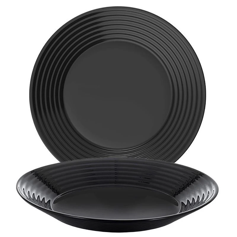 Тарелка серии Арена Блэк выполнена из ударопрочного стекла, устойчивого к резким перепадам температуры. Возможно использование в посудомоечной машине и СВЧ.