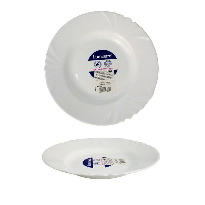 Тарелка серии Кадикс изготовлена из ударопрочного стекла. Выдерживает перепады температуры, что дает возможность использования в микроволновой печи и в посудомоечной машине. Элегантная сдержанность форм, белоснежный цвет и нежный рельефный узор понравятся многим хозяйкам.