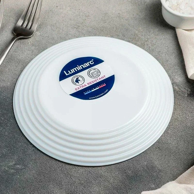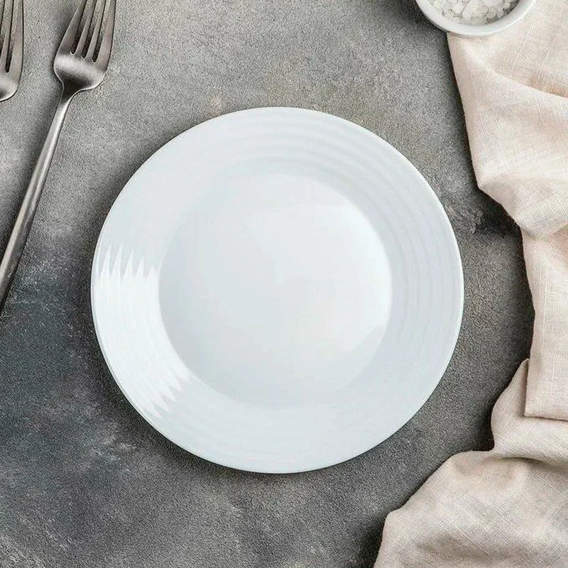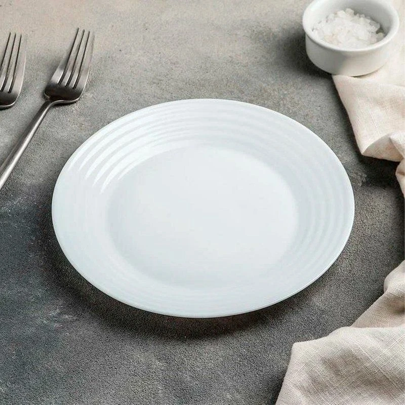 Тарелка серии Арена выполнена из ударопрочного стекла, устойчивого к резким перепадам температуры. Возможно использование в посудомоечной машине и СВЧ.