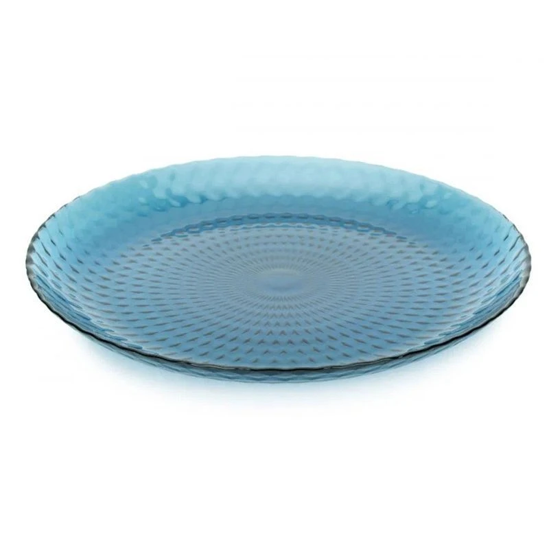 Тарелка изготовлена из высококачественного упрочненного стекла, которое устойчиво к появлению царапин, внешним повреждениям и перепадам температур. Стекло не мутнеет со временем и не выделяет вредных веществ. По сравнению с обычной посудой, оно в 2-3 раза прочнее, и при падении разбивается на крупные неострые куски.