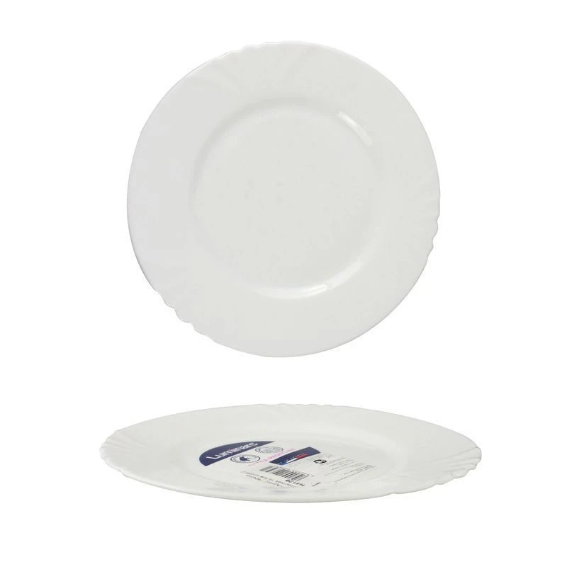 Тарелка серии Кадикс изготовлена из ударопрочного стекла. Выдерживает перепады температуры, что дает возможность использования в микроволновой печи и в посудомоечной машине. Элегантная сдержанность форм, белоснежный цвет и нежный рельефный узор понравятся многим хозяйкам.