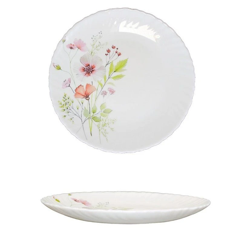 Коллекция Сухоцветы изготовлена из белоснежной тонкой стеклокерамики с фигурным краем.