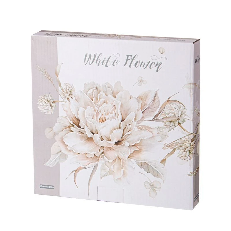 Эксклюзивная коллекция "WHITE FLOWER" из белоснежного костяного фарфора. Современные формы, удобные ручки, оптимальные объемы. Белая, серая и голубая цветовые гаммы прекрасно сочетаются и дополняют друг друга. Роскошный белый цветок завораживает красотой и объемом. Красочная индивидуальная упаковка. Это прекрасный подарок для себя и своих близких! Посуда прошла сертификацию. Безопасно для контакта с пищевыми продуктами. Мыть мягкими моющими неабразивными средствами. Можно смело использовать в микроволновой печи, мыть в посудомоечной машине.