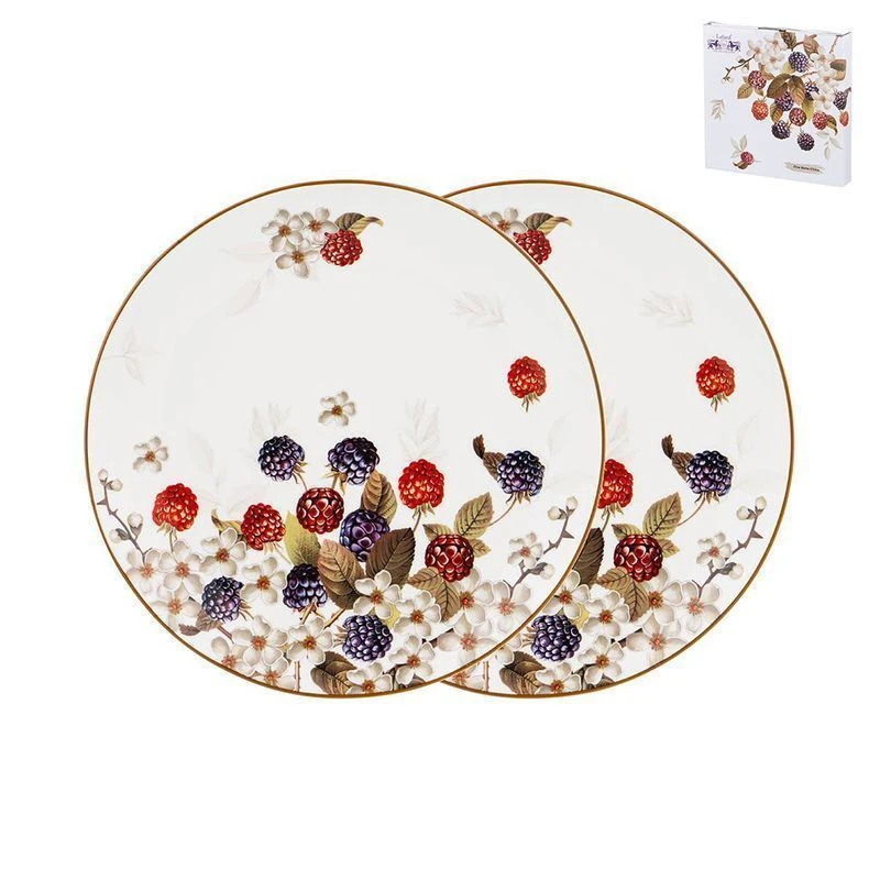 Посуда из белоснежного костяного и тонкостенного фарфора с сочными ягодами ежевики станет украшением любого стола.Яркая упаковка делает ее отличным подарком для друзей и близких. Разрешено использование в микроволновой печи, можно мыть в посудомоечной машине мягкими моющими средствами.