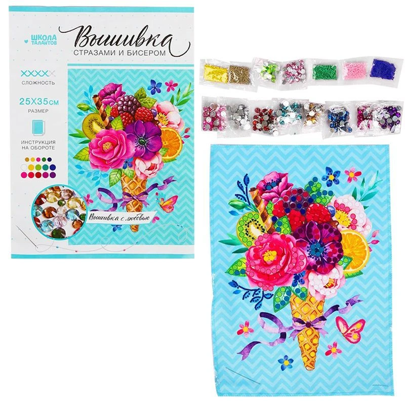 Вышивка с частичным заполнением и цветной схемой делают этот набор идеальным для тех, кто впервые пробует себя в таком хобби. Кроме того, внутри вы найдёте инструкцию с вариантами наиболее популярных швов и подробными описаниями каждого из них.