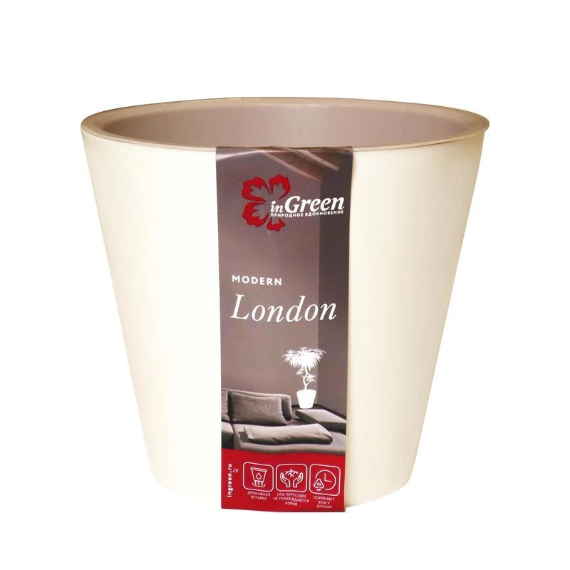 Горшок для цветов состоит из кашпо и технической вставки благодаря чему отсутствует необходимость в поддоне. Гладкие стенки внутренней вставки препятствуют врастанию корней к стенкам горшка, облегчая пересадку. Воздух циркулирующий между внутренней вставкой и кашпо обеспечивает терморегуляцию корней, не давая им перегреваться на солнце. Горшки для цветов выполнены из прочного и легкого пластика, не подвержены деформации и внешним воздействиям, не выгорают на солнце, а также не царапаются.