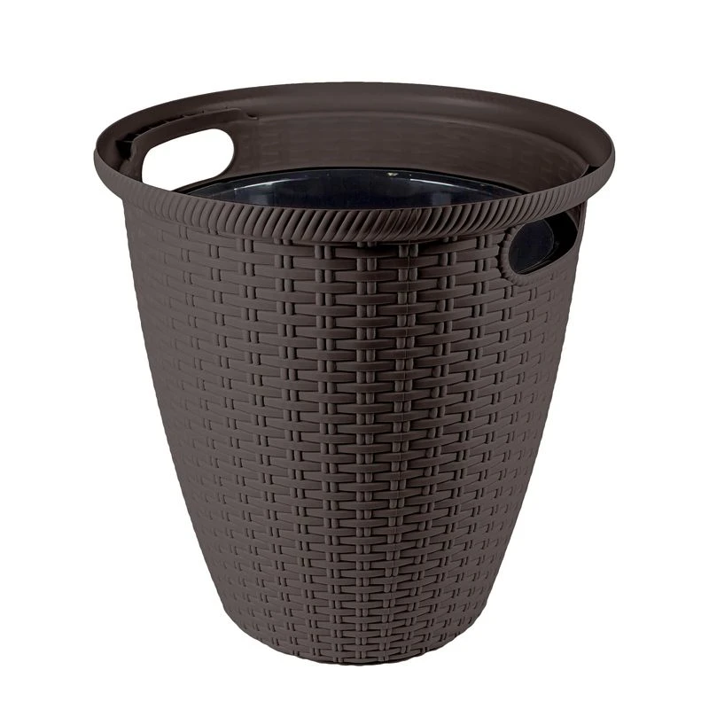 Самое популярное плетение воплощено в кашпо и мебели различных форм и размеров. Растение высаживается в технический горшок –вставку с дренажными отверстиями, затем помещается в декоративное кашпо, благодаря чему отсутствует необходимость в использовании поддона. Двойная конструкция горшка помогает сохранить корни при пересадке, а также защитит от перегрева, даже если растение находится под прямыми солнечными лучами. Горшок для цветов имеет эргономичные ручки для легкой транспортировки растения. Прочный пластиковый материал сохраняет растение от повреждений, подходит для использоваться в помещении для комнатных растений и на улице до -5С. Единая коллекция с большим выбором литражей помогает создать гармоничный интерьер.