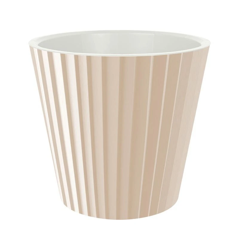 Каждая объемная складка внешней поверхности создает воздушный канал, снабжающий корни растений кислородом и отводящий излишки тепла.Горшок состоит из кашпо и внутренней дренажной вставки, благодаря этому отстсутствует необходимость в поддоне. Изделие выполнено из прочного и легкого пластика, устойчиво к внешним воздействиям, а также не выгорает на солнце. Легкий уход- горшок достаточно протереть влажной тканью.