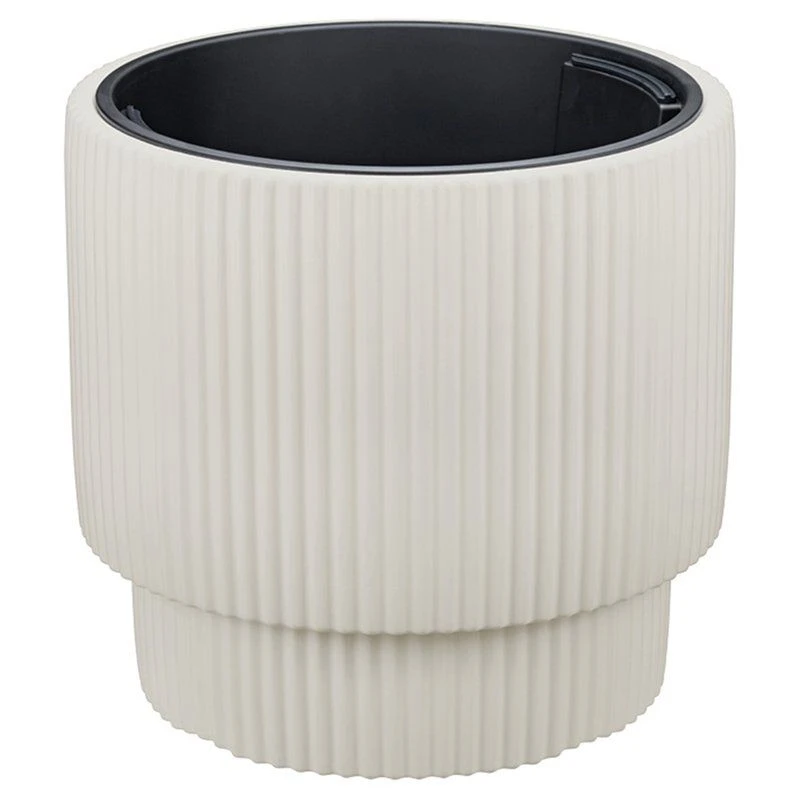 Кашпо комплектуется вкладышем (объёмом 20л), высота которого меньше высоты кашпо. Это позволяет экономить количество почвы и высаживать растения с любой корневой системой. Вкладыш оснащён удобными ручками, которые позволяют вытащить его в случае необходимости.