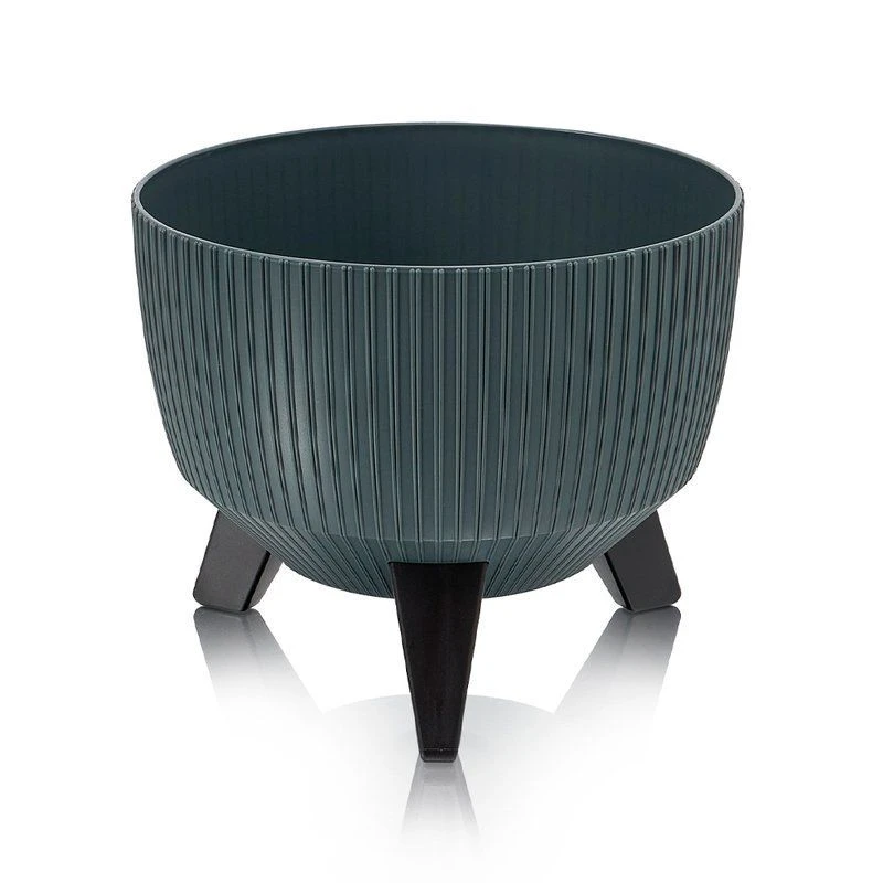 Напольное кашпо с плоской дренажной вставкой — отличный выбор для любителей комнатных и уличных цветов. Модель Vinto в виде глубокой чаши на съемных ножках идеально подходит для использования круглый год дома или на улице в летний период. Широкая емкость хороша для создания цветочных композиций из садовых однолетников, а также выращивания оригинальных декоративных растений, из которых получается шикарная цветущая клумба. Монстера, гортензия или петуния органично сочетаются с ребристой поверхностью корпуса. Вместительный горшок с красивыми цветками станет стильным элементом интерьера или сада, добавит изюминку в обустройство зоны отдыха на балконе. Пластиковое изделие легкое и практичное.
