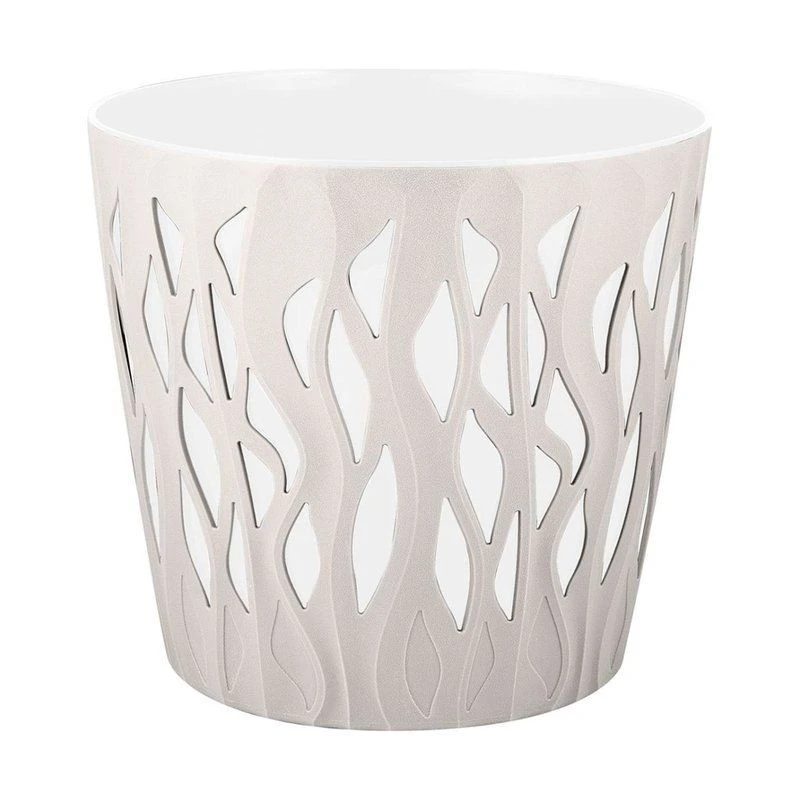 Горшок для цветов InGreen Wind — это стильный и практичный цветочный горшок с необычным рельефным дизайном корпуса, придающим ему особую выразительность. Фактура поверхности горшка визуально напоминает следы порывов ветра на песке, создает тактильное ощущение легкости. А игра света и тени в сквозных узорчатых вырезах, сквозь которые просвечивает внутренний горшок, добавляет композиции динамики и современной эстетики.