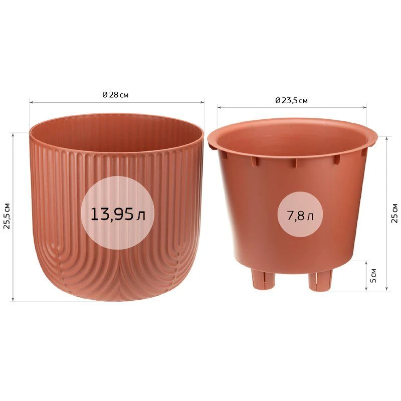 Кашпо РАМОНА состоит из корпуса и вставки.