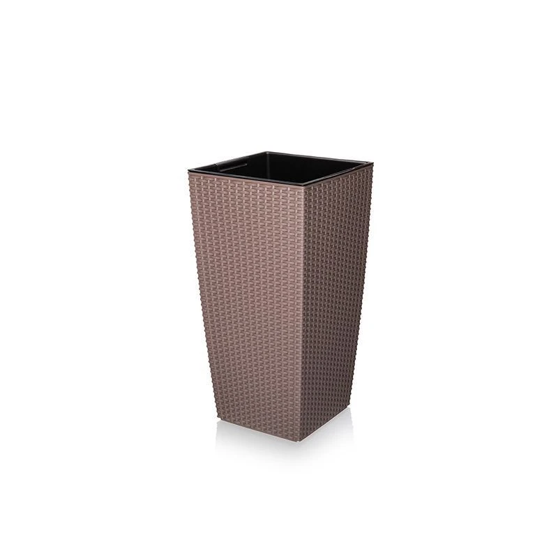 Кашпо выполнено из высокопрочного пластика, с имитацией под натуральный ротанг, что делает его стильным элементом декора. Специальная внутренняя вставка, которая имеет удобные ручки, облегчит процесс высадки растения и уход за ним. Влага в пластиковых горшках задерживается дольше и растения не нуждаются в частом поливе. Размеры изделия - высота 465 мм, длина и ширина – 245 мм, высота вставки - 235 мм, длина и ширина – 243 мм, объём вставки – 9 л, объём кашпо — 20 л.