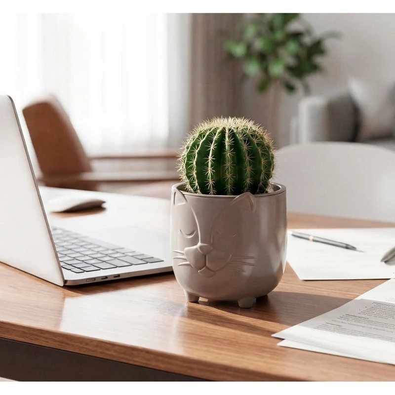 Его уникальный дизайн сразу притягивает взгляд, превращая обычный суккулент или кактус в главного героя полки.