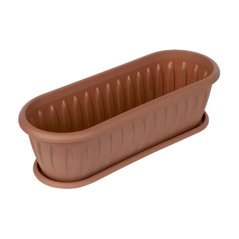 Емкость для кактусов отличается оригинальной вытянутой формой, что позволит разместить растения даже на самом узком подоконнике. А наличие поддона и дренажных отверстий обеспечит отток излишка влаги. Можно поливать сразу в поддон, вода постепенно по мере высыхания земли напитывает субстрат, и растения получают необходимое количество влаги.
