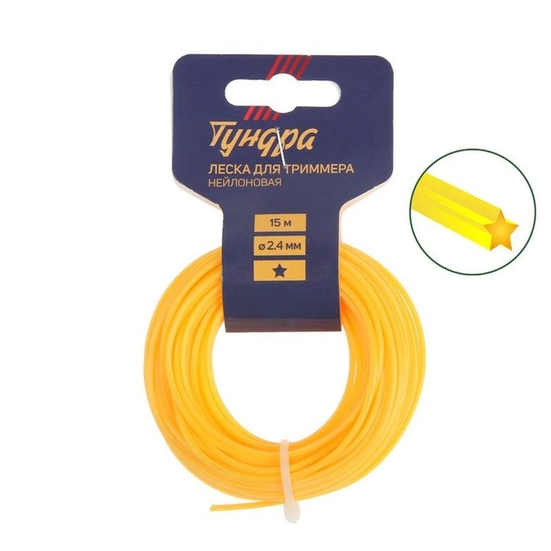 Сечение лески имеет форму звезды, что обеспечивает эффективную резку травы и другой растительности. Не имеет витой формы и жилы.