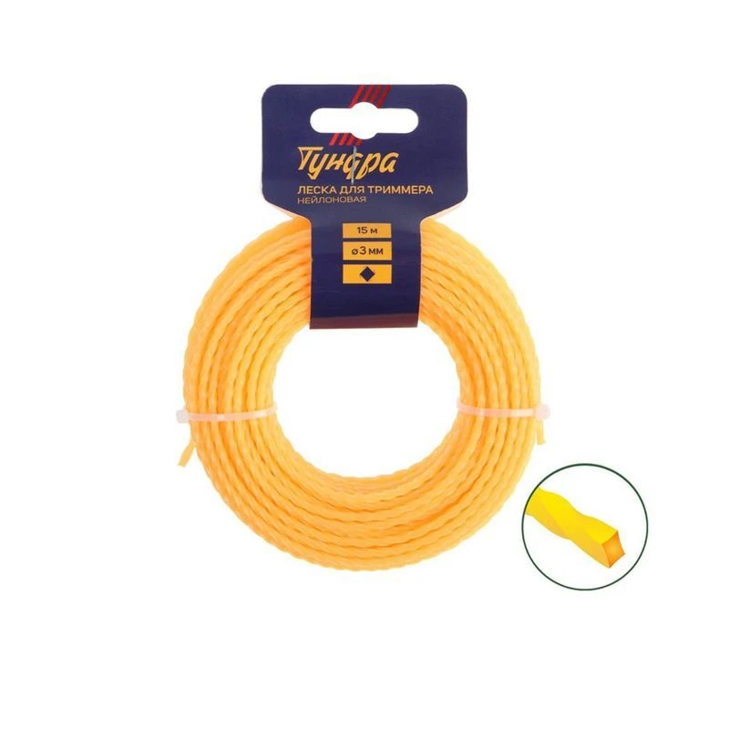 Леска от марки «ТУНДРА» предназначена для использования с триммерами и выполняет функцию режущего элемента.