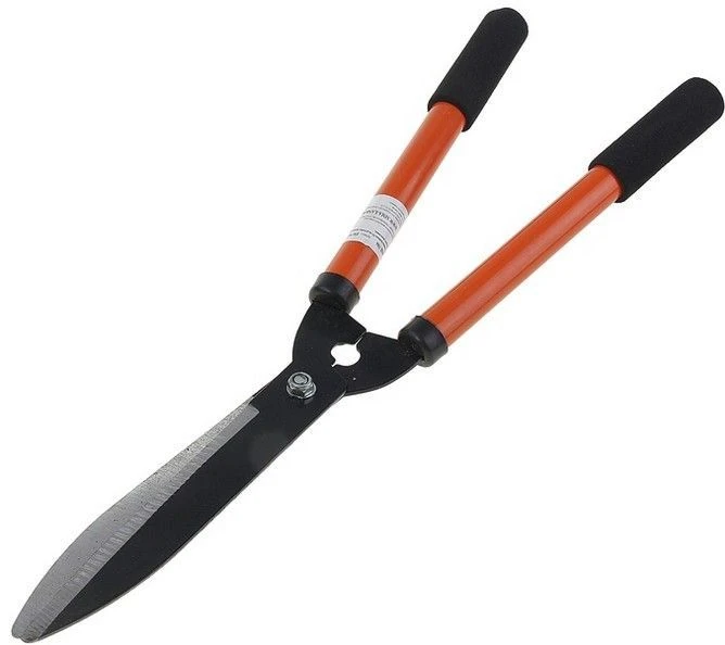 Инструмент предназначен для придания формы различным кустарникам и деревьям небольшого размера. Данную модель особенно удобно использовать благодаря пластиковым ручкам с поролоновым покрытием. Острые лезвия делают силуэт растений чётким.