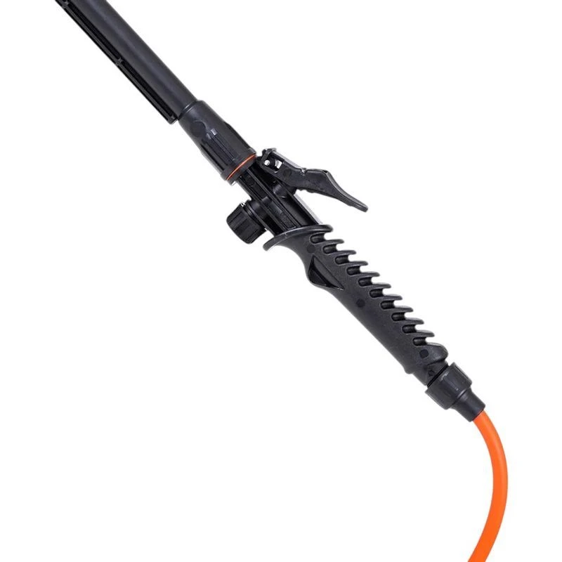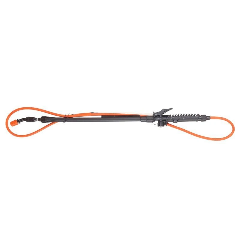 Брандспойт состоит из 2 трубок, ручки, шланга и распылительного узла на конце. Тип распыления регулируется от струи до мелких брызг. Длина брандспойта от 650 мм до 970 мм.