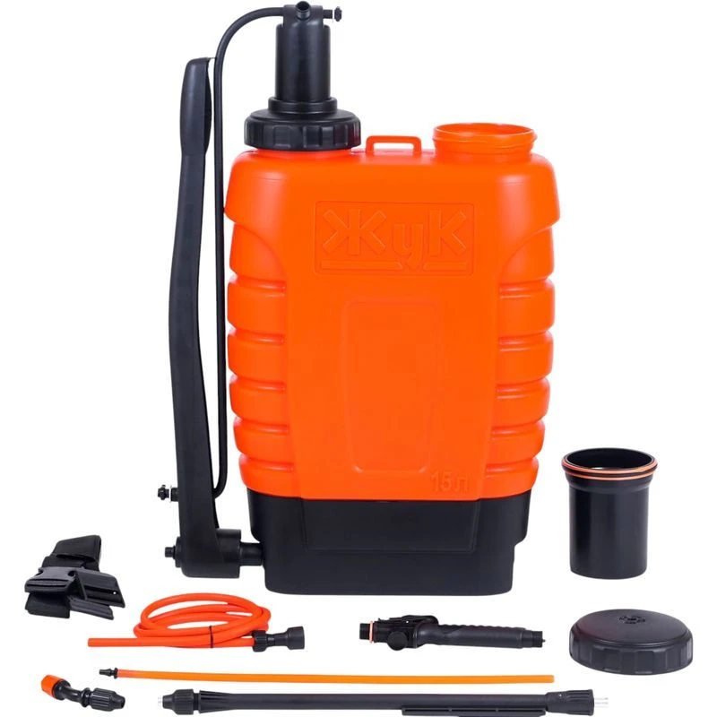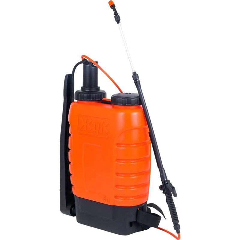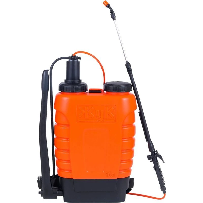 Ранцевый опрыскиватель - аппарат, который используется для обработки гербицидами деревьев, кустарников, культурных растений при борьбе с насекомыми. Оснащен вместительным баком, рассчитанным на 15 литров удобрения. На входе емкости установлен сетчатый фильтр, который задерживает твердые включения. В результате - распылитель не забивается и остается чистым. Благодаря плечевым рукояткам опрыскивателем удобно пользоваться даже при обработке значительных территорий. Штанга телескопическая (ее длина регулируется от 650 до 970 мм).