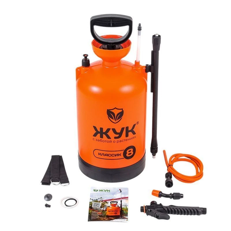 Работа опрыскивателя основана на давлении сжатого воздуха. Комплектуется телескопическим брандспойтом. Давление накачивается возвратно поступательным движением поршня насоса, затем происходит распыл нажатием и удержанием клавиши брандспойта, клавиша оснащена фиксатором для непрерывного распыла. Факел распыла регулируется от струи до тумана. Горловина бачка выполнена в виде воронки. Опрыскиватель оснащен предохранительным клапаном и поддоном для дополнительной устойчивости.