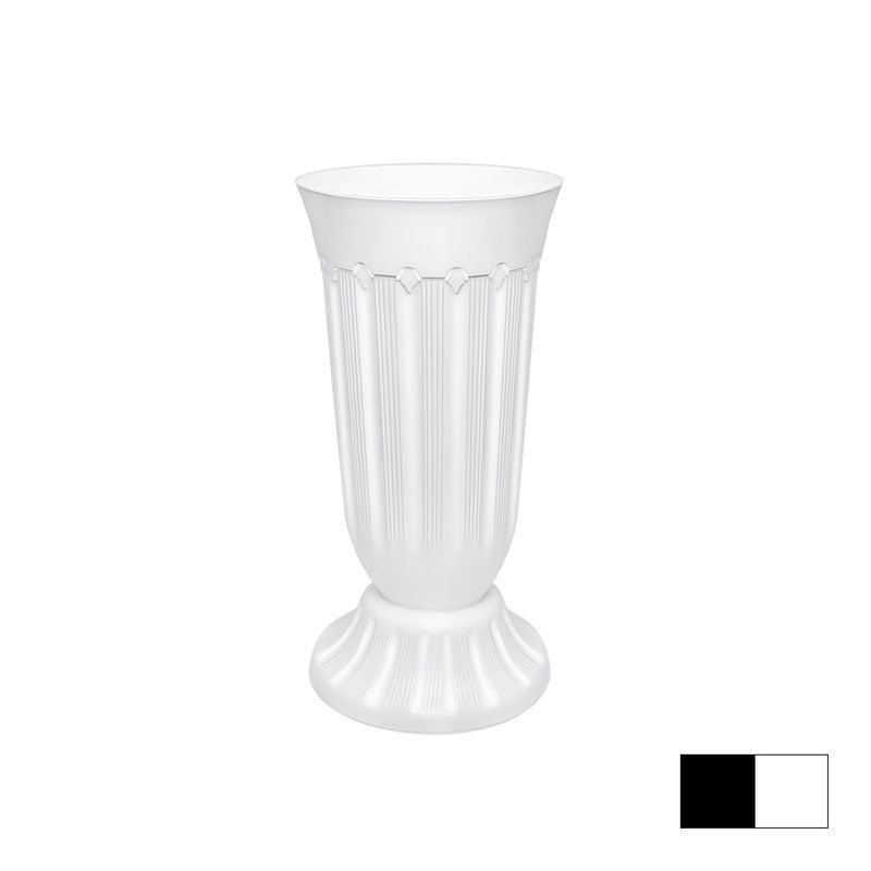 Вазон «Флавия» 5 л. выполнен из первичного сырья - высококачественного пластика, обладающего механической прочностью. Изделие не имеет запаха, устойчиво к УФ лучам, не занимает много места. При правильной эксплуатации прослужит Вам долгие годы. Оригинальная форма подчеркнёт красоту букета, а сдержанные классические оттенки – чёрный и белый, не будут отвлекать внимание от цветов. Вазон «Флавия» будет смотреться в любом интерьере, и идеально подойдёт для украшения витрин цветочных магазинов.