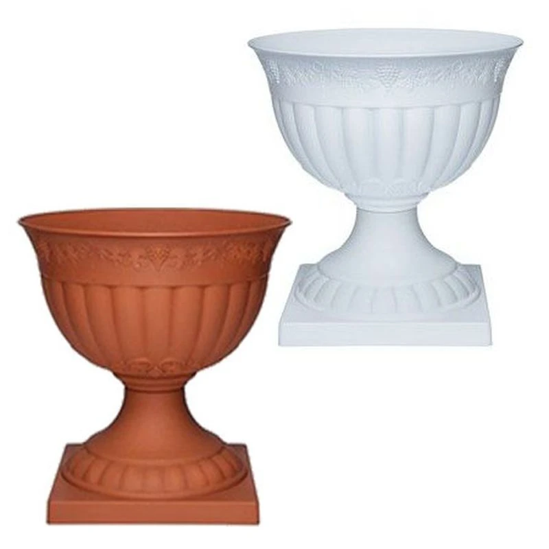 Вазон «Флора» 14,5 л. выполнен из первичного сырья - высококачественного пластика, обладающего механической прочностью. При правильной эксплуатации прослужит Вам долгие годы. Вазон изготовлен в форме большого кубка с фигурной устойчивой ножкой. Модель представлена в двух цветах: в белом и в терракотовом цвете. Внешние стенки и основание изделия, декорированы сдержанным выпуклым декором, имитирующий глиняный горшок. Такой вазон станет изысканным элементом дизайна, а посаженные в него любимые цветы будут радовать своей красотой.