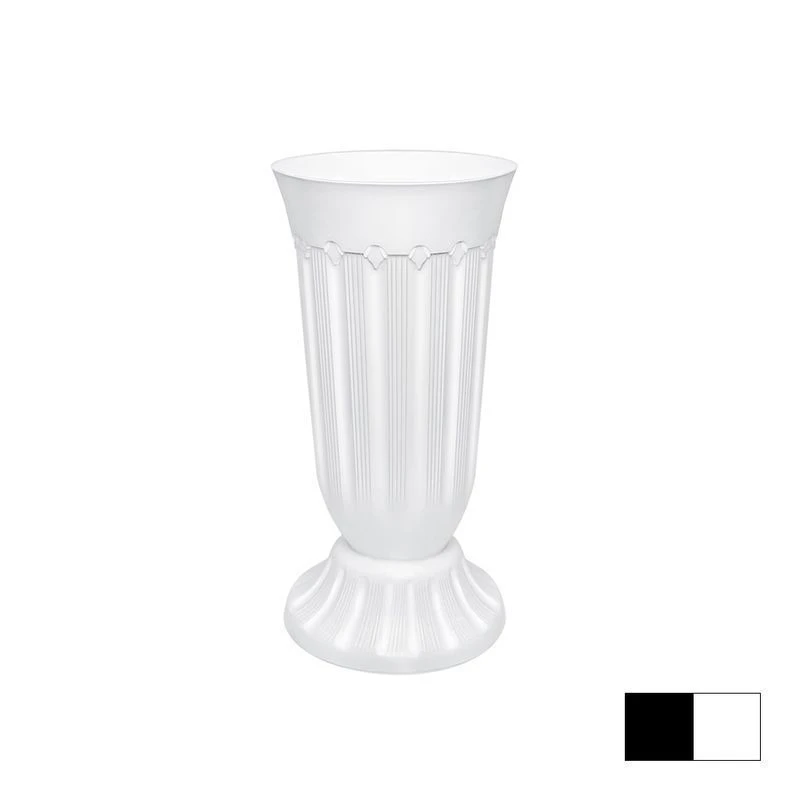 Вазон «Флавия» 12 л. выполнен из первичного сырья - высококачественного пластика, обладающего механической прочностью. Изделие не имеет запаха, устойчиво к УФ лучам, не занимает много места. При правильной эксплуатации прослужит Вам долгие годы. Оригинальная форма подчеркнёт красоту букета, а сдержанные классические оттенки – чёрный и белый, не будут отвлекать внимание от цветов. Вазон «Флавия» будет смотреться в любом интерьере, и идеально подойдёт для украшения витрин цветочных магазинов.