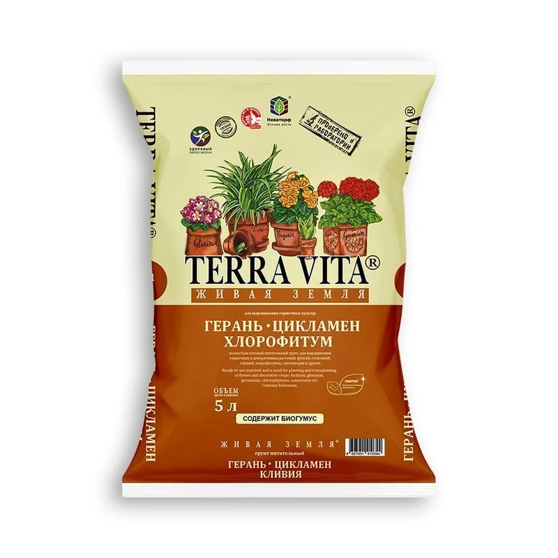 Полностью готовый питательный грунт для выращивания горшечных и декоративных растений: фуксий, глоксиний, гераней (пеларгоний), хлорофитумов, аспарагусов, кливий, плющей, фатсий, цикламенов, сансевиерии и других. Грунт производится из смеси торфов низкой и повышенной степени разложения. Подходит для выращивания горшечных и декоративных растений, применяется в качестве подкормки, при усадке грунта.