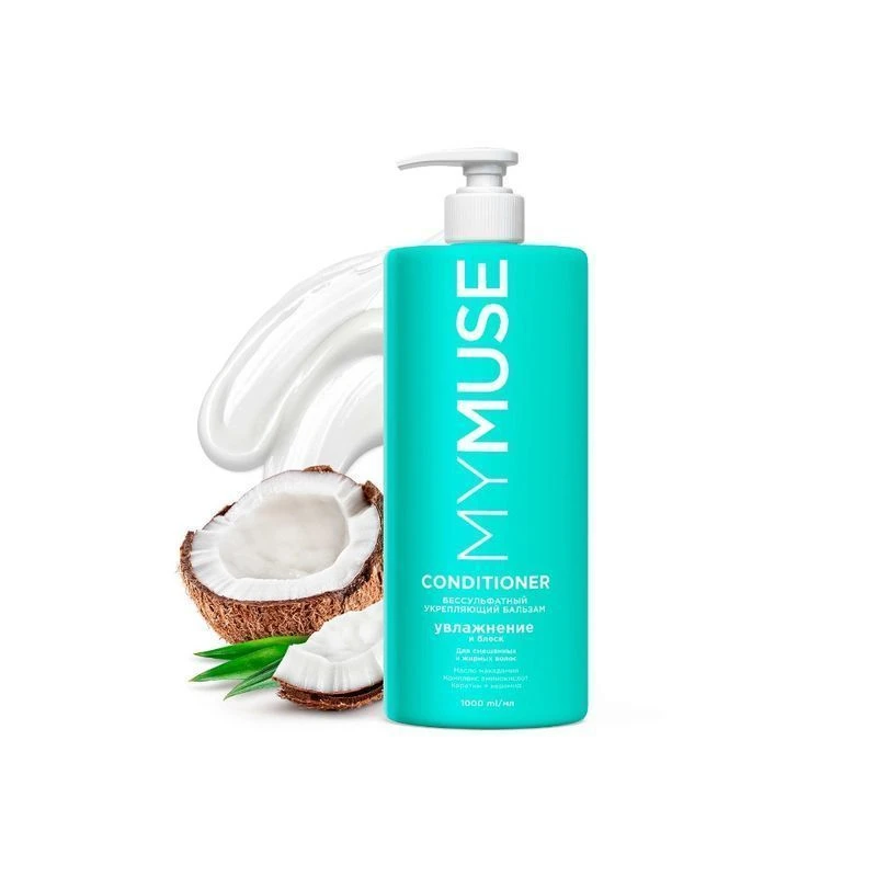 Бессульфатный бальзам с маслом макадамии и ароматом кокоса.