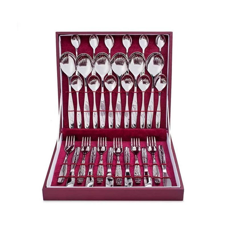 6 столовых ножей,6 столовых вилок,6 столовых ложек,6 чайных ложек,6 кофейных ложек