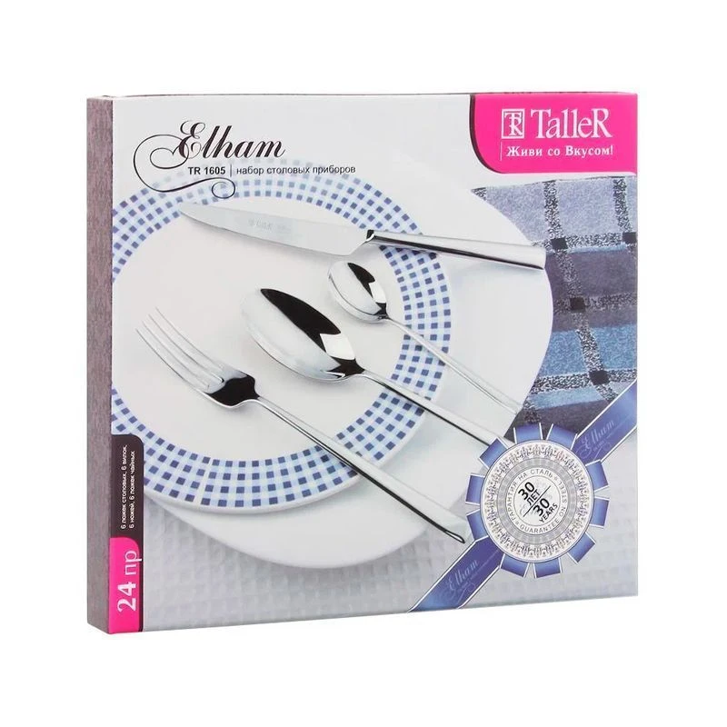 ложки столовые - 6 шт., ложки чайные - 6 шт., вилки - 6 шт., ножи столовые - 6 шт.