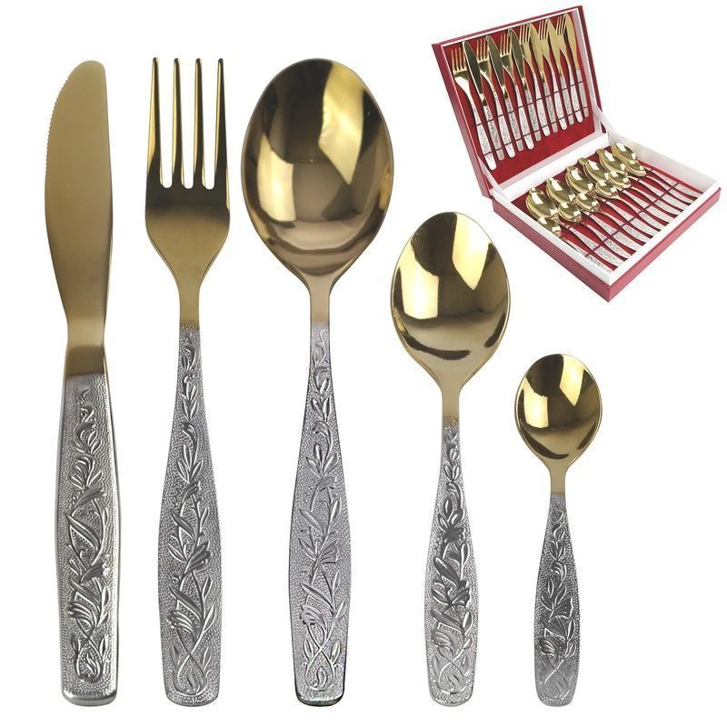 6 столовых ножей,6 столовых вилок,6 столовых ложек,6 чайных ложек,6 кофейных ложек