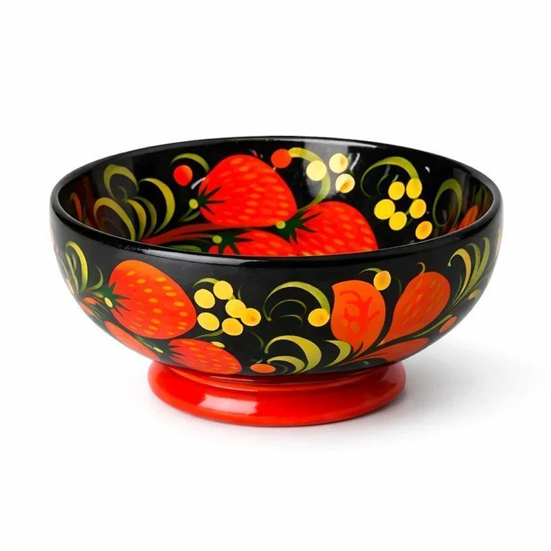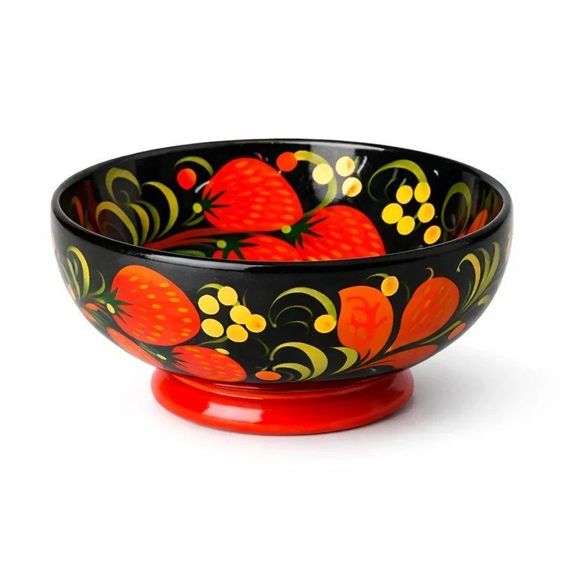 Розетка на стол с хохломской росписью идеально подходит для десерта или блюд, подающихся небольшими порциями. Простой но красивый узор с растительными мотивами, выполненный в стиле хохломы будет радовать глаз Ваших гостей.