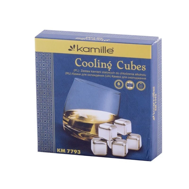 Набор стальных кубиков для охлаждения виски без разбавления напитка или изменения вкуса и запаха. Для охлаждения напитка предварительно поместите кубики в холодильник на 4 часа
