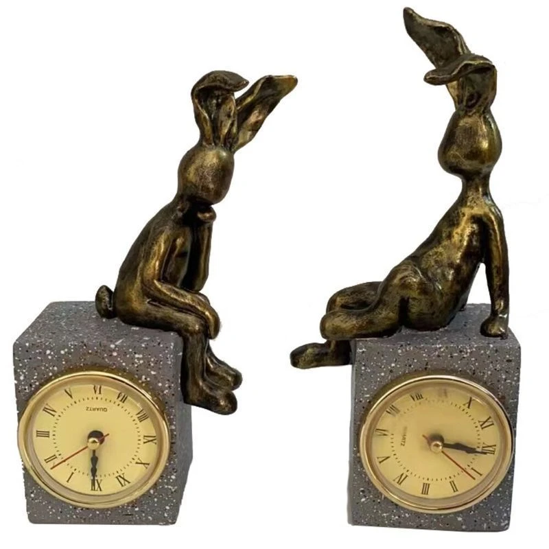 Часы настольные с фигуркой Кролика - символ года. Разнообразит оформление комнаты, станет отличным дополнением к новогоднему подарку. Представлены в двух вариантах. Работают от одной батарейки ААА (не прилагается).